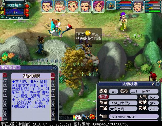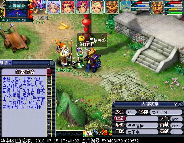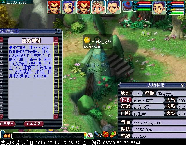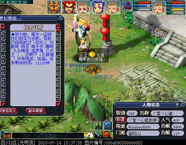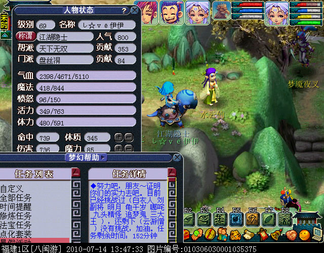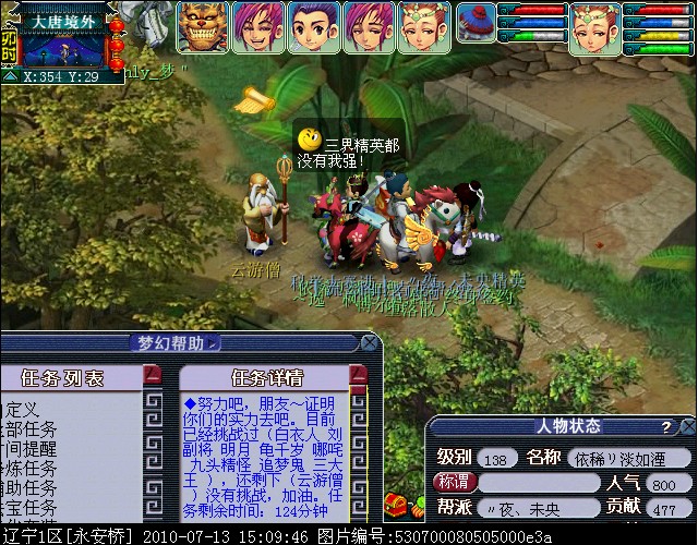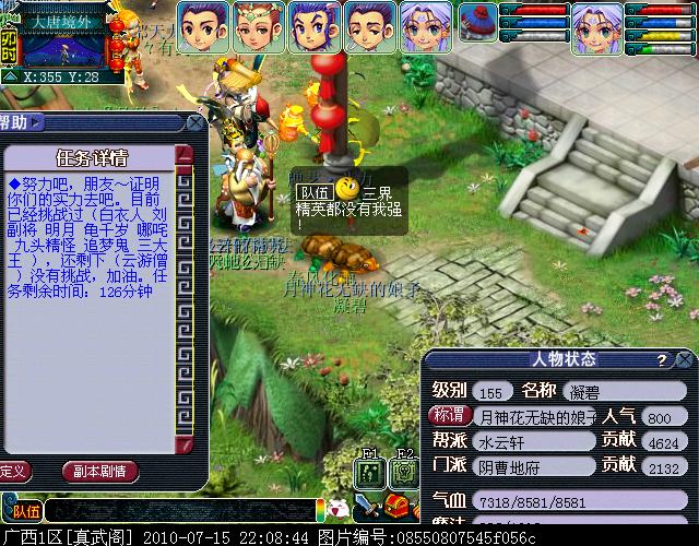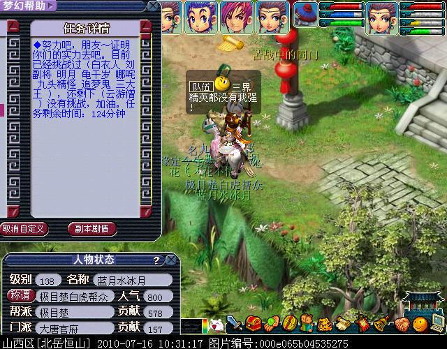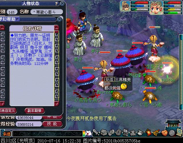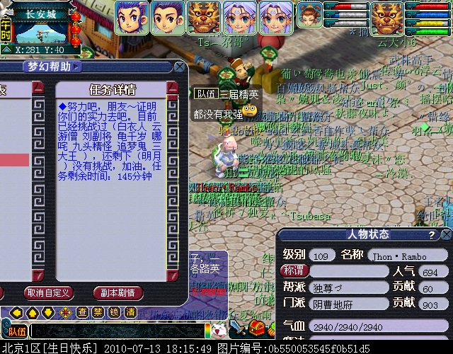 02、请务必通过游戏中键盘上的截图键进行截图,这样的截图会保留游戏底部的截图黑条,里面清楚显示你的时间服务器等信息。(唯美版测试服务器没有黑条,请使用唯美版截图,经典版必须保留黑条)