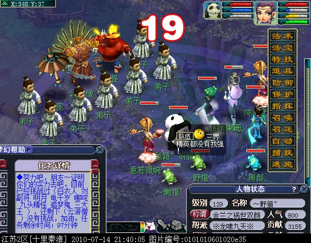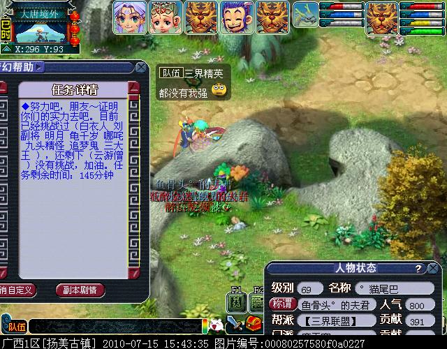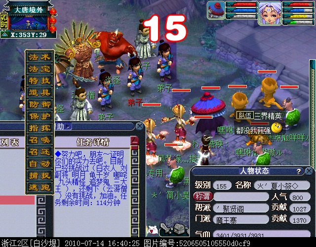 当挑战到最后一位三界杰出代表时(任务栏只剩下1个NPC名字)截图。