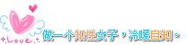 原帖由 泡沫奶酪 于 2010-7-28 13:25 发表 还接吗 我想要作品楼里第八个样式那样的 字:做一个知性女子,冷暖自知。 麻烦楼主了