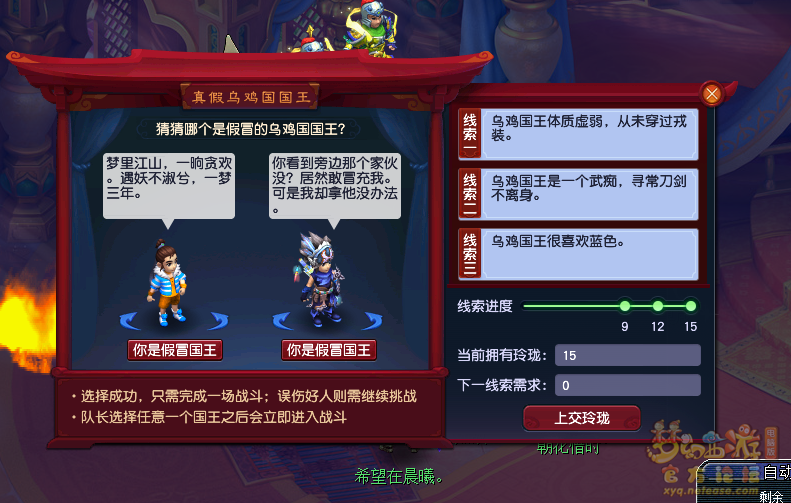 有次线索更牛逼,乌鸡国王喜欢红色,然后给的是上面2个蓝衣服人物![]() |