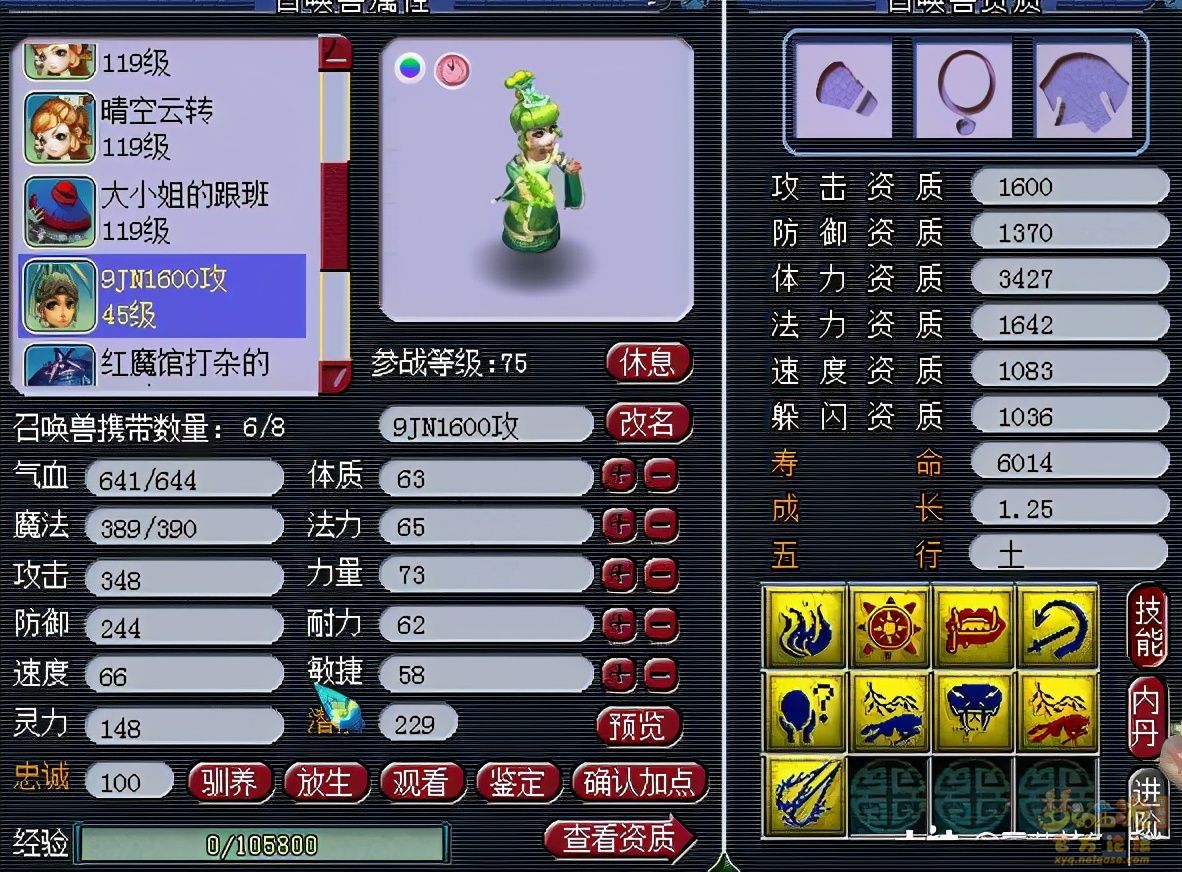 如意仙子极少被拿来炼妖,算半个个性宠吧,进阶后的如意仙子颜值还是可以的,这只被炼出来的9个既能的如意仙子,还有着1600的攻资跟1.25的成长,属性很爆炸,目前来说是CBG上格子最多的,因为太偏门,不知道其他玩家 ...