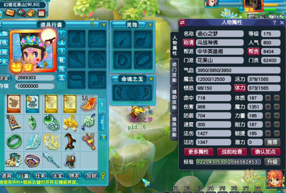 法伤低了,法防没变,说明不可能是法伤技能加成出问题了,再看伤害,两张图伤害不一样,伤害1106-968=138,这不一眼测试服用的是力经脉,拿来对比正式服的魔经脉?而且测试服还是用的第一套经脉,89丹+80伤害,伏妖+58伤害,刚好138点。楼主自己搞错了,你们也以为削花果山了? |