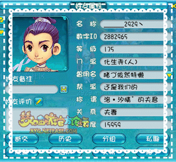 在别人眼里猪头是个烂好人,无论谁有困难,去找他了,他都帮忙。虽然刚开始我们并没有结婚,但他却一直保护着我。那个时候晴晴只有89级而猪头的等级已经非常高了,但他常常还是会带着我玩,甚至带着我这个号去刷7夕任务 ,关注着晴晴的每一届比武。每每晴晴在世界里喊收东西的时候,猪头总是会悄悄地为我准备好。为了打造个JP勇武NE号,那个时候的晴晴天天埋头找宝宝,找装备,猪头也陪着我一起找,帮我养HS孩子。如果没有猪头,相信也没有晴晴今天的勇武号就这样我们成了最好的知己。某天我们去扎髯客那里结拜了,结拜的称谓着实想了大半天,后来就直接叫“☆幻双猪”了,其实是晴晴比较笨,想不出什么好称谓,那就猪到底吧 。155级的他一直带着89级的我友好度停在了3012。