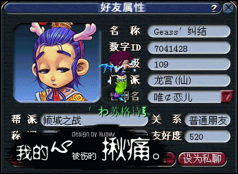 原帖由 枫叶悠悠 于 2009-5-18 22:24 发表 人物:剑侠客,黑头发,白衣服,白飘带 名字:′х ¨咴暗ミ 武器:四法青云 称谓:单身贵族 美化字:有些人、很可笑,明明 寂寞,装骄傲 手 ...