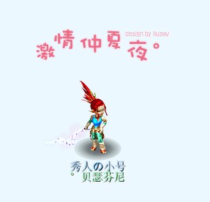 原帖由 秀人 于 2009-5-18 21:46 发表 论坛底色。 狐狸。 名:°贝瑟芬尼 称:秀人の小号 红头发浅蓝衣服浅蓝裤子。 120鞭子。(做个纯白的可以么?) 施法动作。 字:激情仲夏夜。