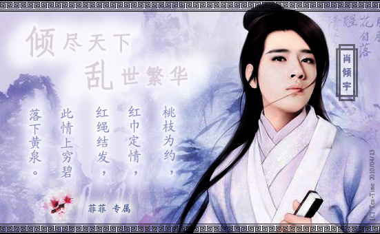 原帖由 °夏婉约、菲 于 2009-10-13 16:36 发表 美化 图中人物旁边加名字,肖倾羽 字:大字 倾尽天下,乱世繁华 小字 桃枝为约,红巾定情,红绳结发…… ...