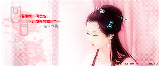 原帖由 绾妆。2㏄ 于 2010-6-25 18:38 发表 背景 字签:凌风而歌,婧姝之女媚国倾。 月下起舞,惊鸿一瞥仙娥影。 花丛漫步,蝶姿纤翩惹人怜。 雪中轻语,清扬 ...