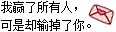 原帖由 ζ、娅小雨° 于 2010-8-4 09:51 发表 好棒啊。 我要例1 字:我赢了所有人,可是却输掉了你。 字体黑色的。 图标可爱点都行。