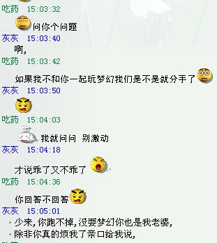 结果他跑去取消了,然后还Q我,一直安慰我,说是不是他做了什么惹我不高兴了,然后一个劲的认错(又来了每次这样我就觉得我是坏人啊....欺负别人那么善良可爱的一个人),说没队他带我,他帮我找经验,帮我跑商,甚至还说BB环也帮我跑....我当时真是感动得..