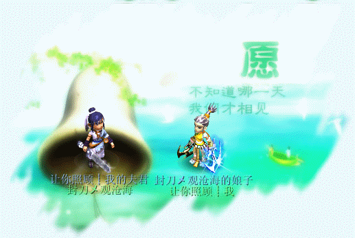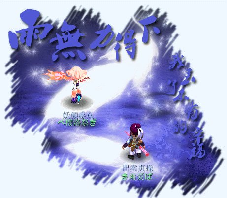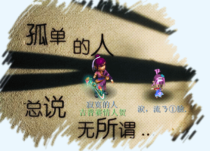 原帖由 鹹蛋超亼 于 2009-4-4 11:23 发表 侠客 孩子 双人动态 尽量美化下 吉普赛情人贺 称谓:寂寞的人 武器 青龙 面朝左上 官方紫衣服 紫头发 白飘带 麻烦染亲了 边上站着人族女孩子,也是紫头发和紫衣服 名字叫 涙,流 ...