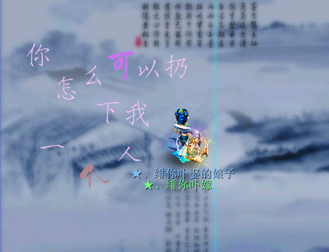 原帖由 玄风醉花荫 于 2009-8-5 16:33 发表 帮我做张喂 人物:舞天姬 名字:★、绯你卟嫁 称谓:★、绯你卟娶的娘子 三染全蓝 拿个120+的光武 随便用哪把圈都可以 加字:你怎么可以扔下我一个人。。。。 背景:http://img10 ...