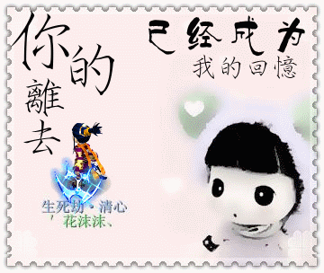 原帖由 有些痛、不說 于 2009-8-13 15:42 发表 名字 ′花沫沫、 人物 燕子 武器 九天金线 称谓 生死劫·清心 字 你的离去,已经成为我的回忆 颜色。 粉色衣服,黑色头发 动态 图 随便来张