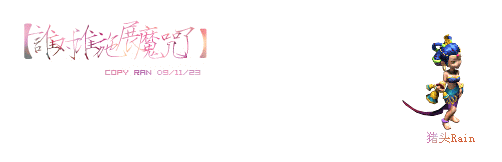 原帖由 猪头Rain 于 2009-11-14 22:02 发表 我要个这样的 名字 猪头Rain 字 谁对谁施展催情咒了?! 谢谢哈 话说我很喜欢零不过其实三个我都喜欢
