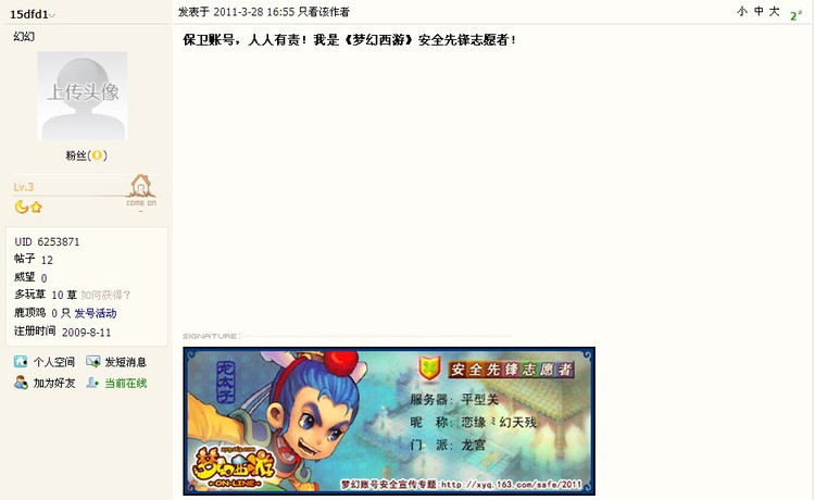 保卫账号,人人有责!我是《梦幻西游》“安全先锋志愿者”!