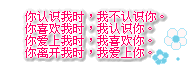 原帖由 ′烟水寒纱╰★ 于 2010-8-5 16:53 发表 样式2 你认识我时,我不认识你。 你喜欢我时,我认识你。 你爱上我时,我喜欢你。 你离开我时,我爱上你。 辛苦辛苦