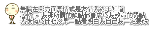 原帖由 苏末微凉。 于 2010-8-5 18:54 发表 楼上那样的 黑色或者灰色,!! 字: 無論在哪方面愛情或是友情我終于知道 心軟 - 我那所謂的缺點都會成爲我致命的弱點 我後悔爲什麽沒早一點看明白我自己我一定要改 摇头那个不行就用蒙眼那个 =0=,