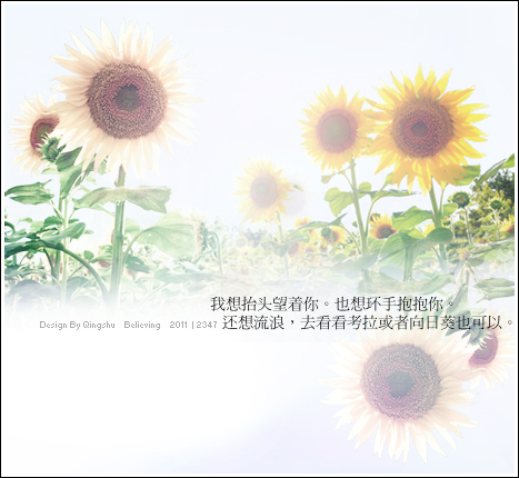 原帖由 寒烟兮 于 2011-10-20 17:25 发表 我想抬头望着你。也想环手抱抱你。 还想流浪,去看看考拉或者向日葵也可以。 有感不~随便怎么做。