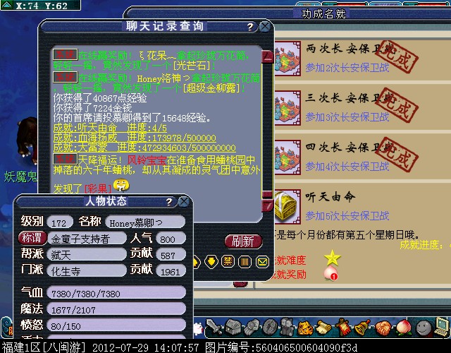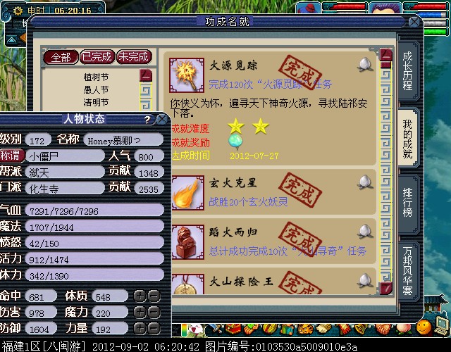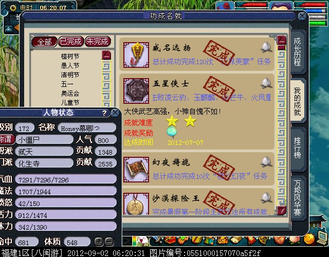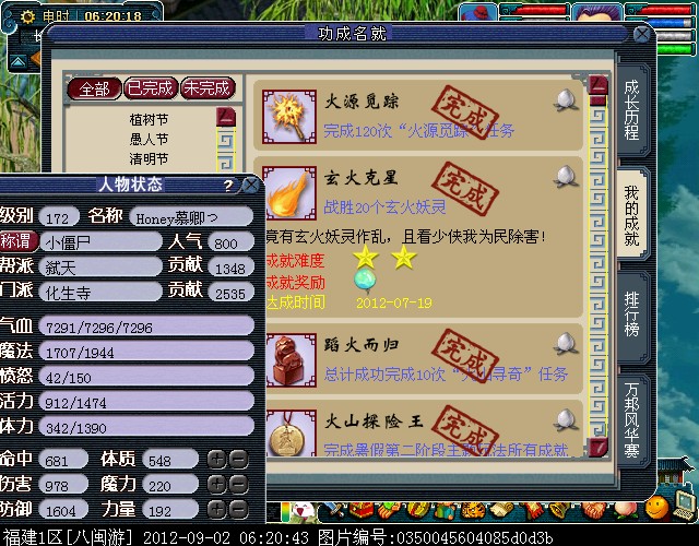 拥有2012年6月29日全服开放的主角特色挂件锦衣