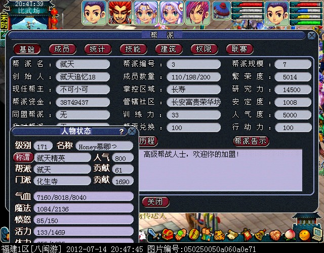 帮派在线人数达到110人