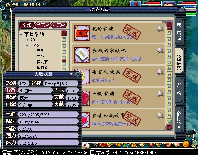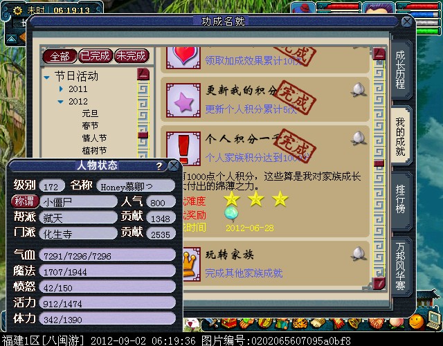 ②个人家族积分达到1000分,拥有“个人积分一千”成就。