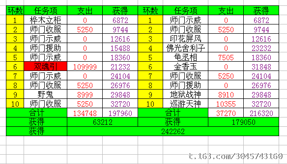 11月23日师门收支统计