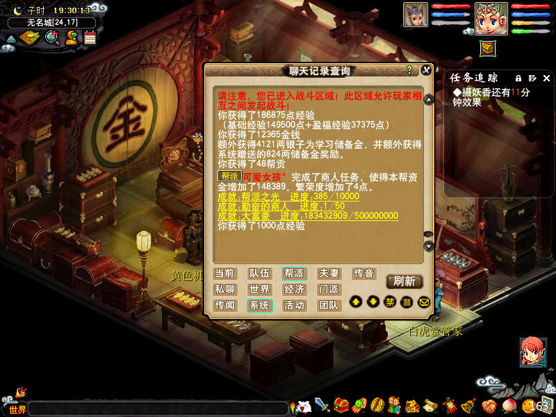 来到新的帮派做的第一次跑商贡献