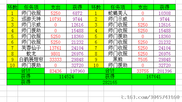 11月24日师门收支统计