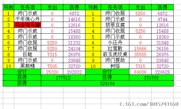 11月29日师门收支统计详表