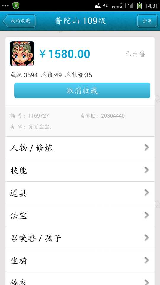 出售 三年外 109凌波城【羽灵神造型】 三修满满烹饪 可全带 可空号