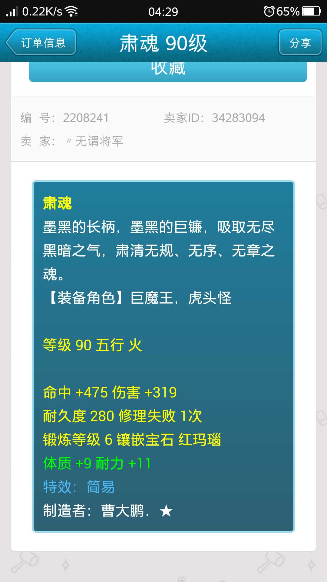 卖了个三孔六段九十简易锤子,双加力魔,200万,卖了一星期