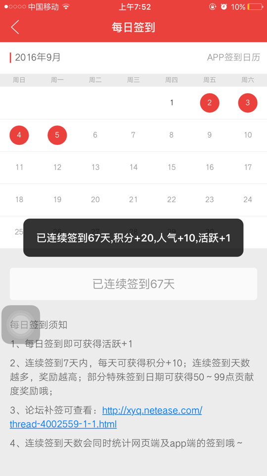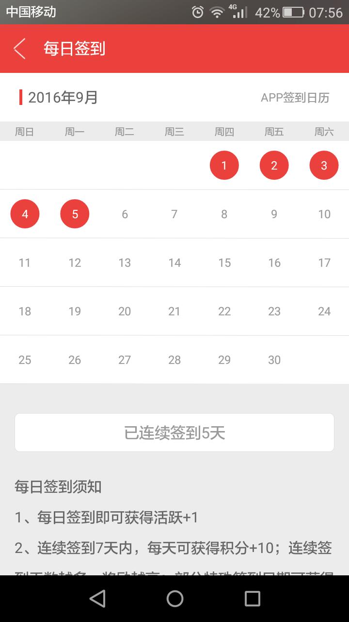签到累计4天