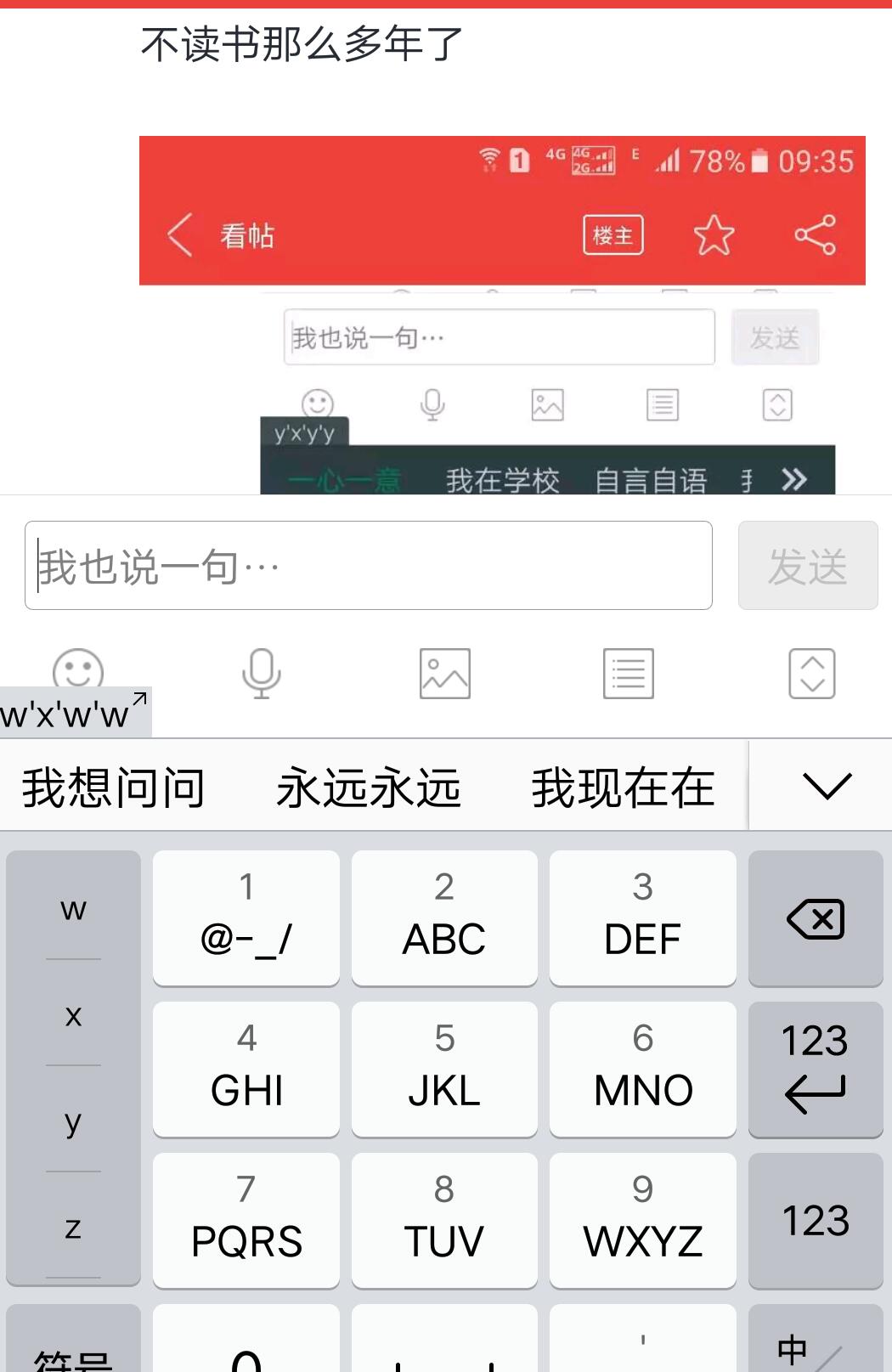 来玩一个小游戏,九键拼音按四个九。很神奇,能了解一个人