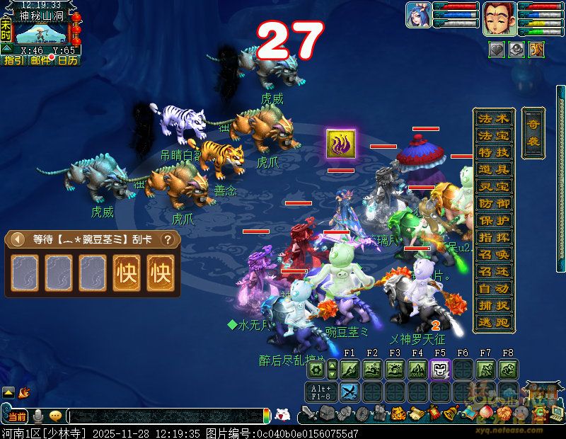 主怪门派为STL,封系建议封印省耐久,前排两个噬天虎门派为LG,剩下的怪物没有输出,可以忽略不计,战斗难度不大。