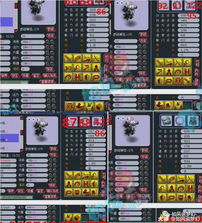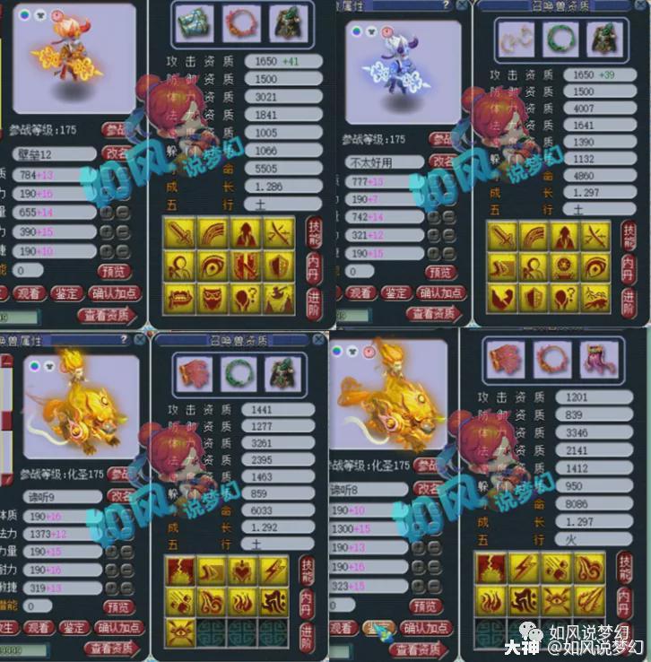 宝宝方面,虽然没有珍宝阁服战宝宝那么多技能,但是资质是真的太黄了,而且还有1只9技须弥观照谛听和8技能须弥观照谛听。