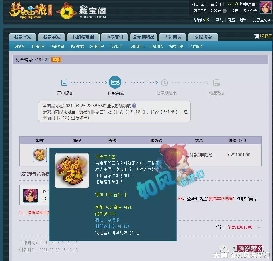 大家好,我是如风,17年老玩家给你带来关于梦幻的故事!(微信公众号:如风说梦幻) 普陀山不约老板29万买凝滞封印头