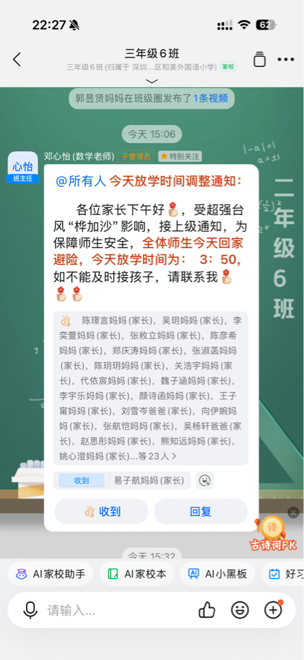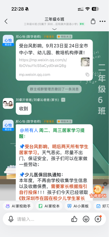 还是学生好,今天深圳全市中小学都停课了。打工人命苦啊,一大早大风大雨去上班,小孩一个人在家,中午他爸才回家投喂。