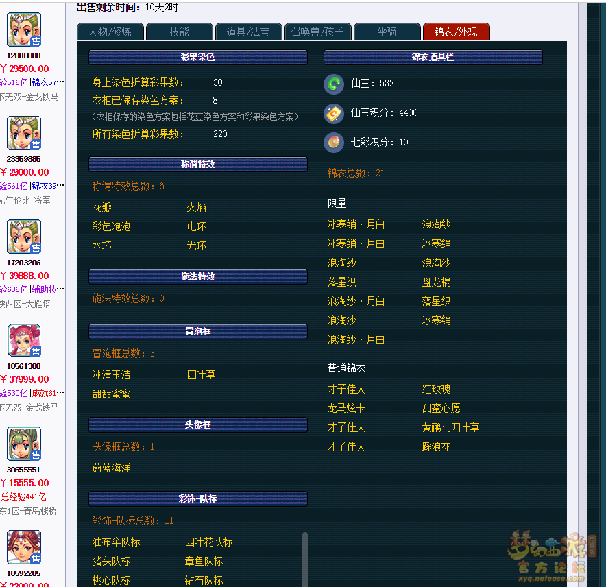 本帖最后由 漫步喵喵 于 2020-12-14 22:45 编辑 藏宝阁全新升级!可查看比翼飞施法特效 角色剩余仙玉积分、七彩积分也可以查看 那些改名什么“号带比翼飞”、“10w仙玉积分”的骗子团伙都凉了 IMG_ ...