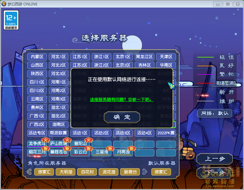 游戏总是卡在扫码登入后,选择了服务器后的下一步,有时会卡在出登入二维码的那里。我感觉自己的网络也很正常啊,打开网页玩别的游戏都正常,就是不能进正常进入梦幻。有人可以提供一些解决方案吗? 7f1bc8612 ...