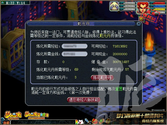 根据飞鱼情报站的爆料的截图显示69级就可以炼化乾元丹了而且已经炼化了3个,我猜测炼化等级不是60级就是65级因为现在65级出师我猜测65级可以炼化的可能性比较大根据飞鱼的截图我量了一下马赛克的长度发现经验是7位的长度也就是说炼化第三个的经验最少是100w,而金钱确是6位是10十万级下面是图片