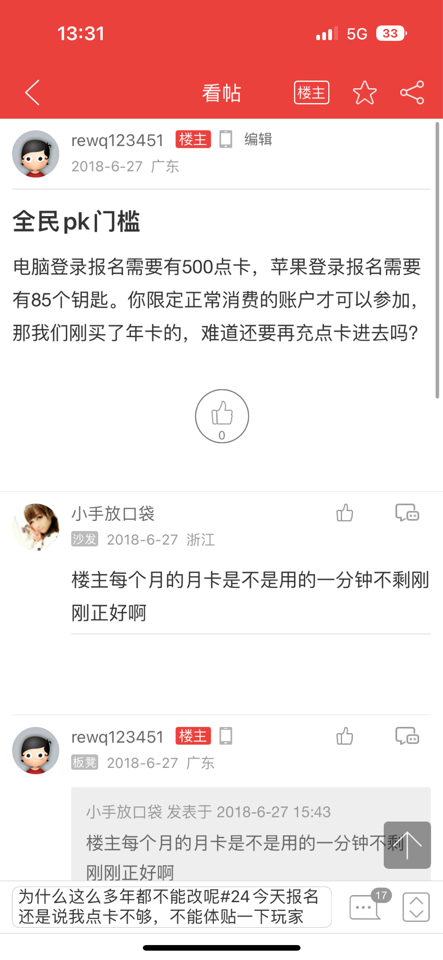 报名需要500点,但我年卡都买了难道还不够证明吗?互通80多个钥匙跟我月卡不是一个道理吗?