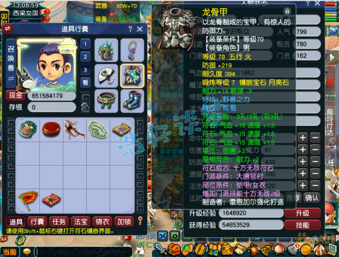 70级简易野兽之力铠甲,加19耐、减3敏,打了7锻月亮石。