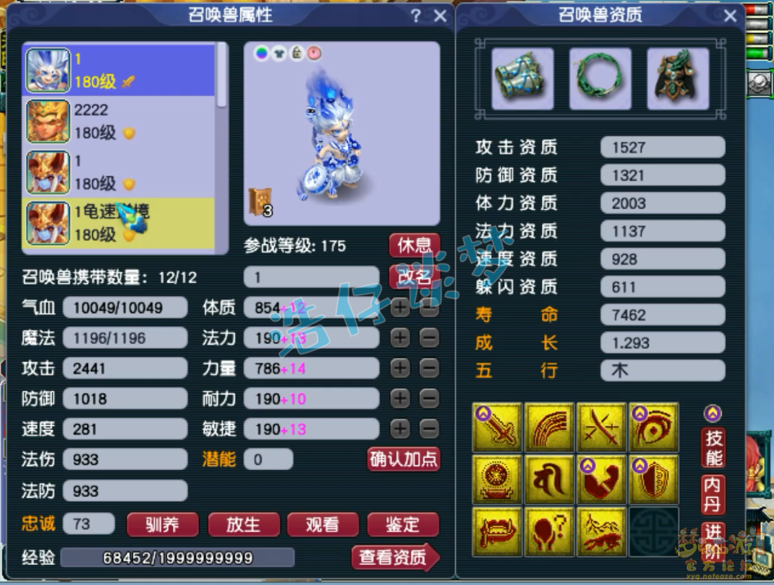8技能净台龟速血宠童子。